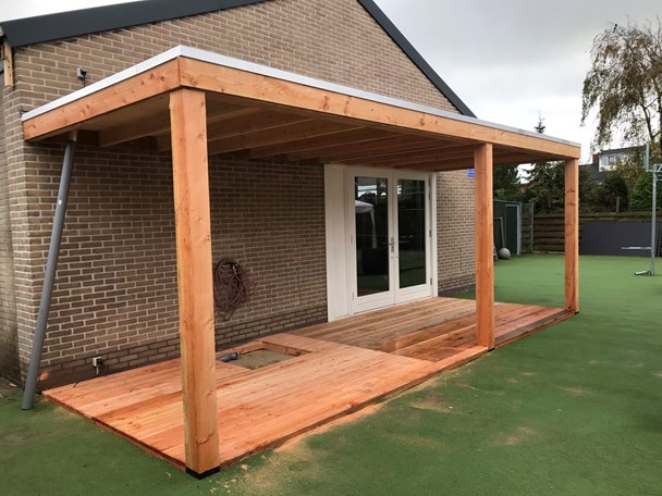 Een kleine veranda/overkapping gemaakt om buiten ook wat sportoefeningen te kunnen uitvoeren bij Next Step te Tuitjenhorn